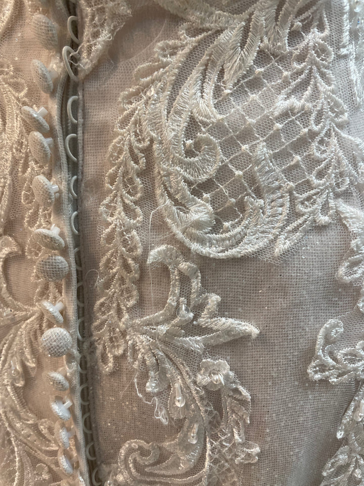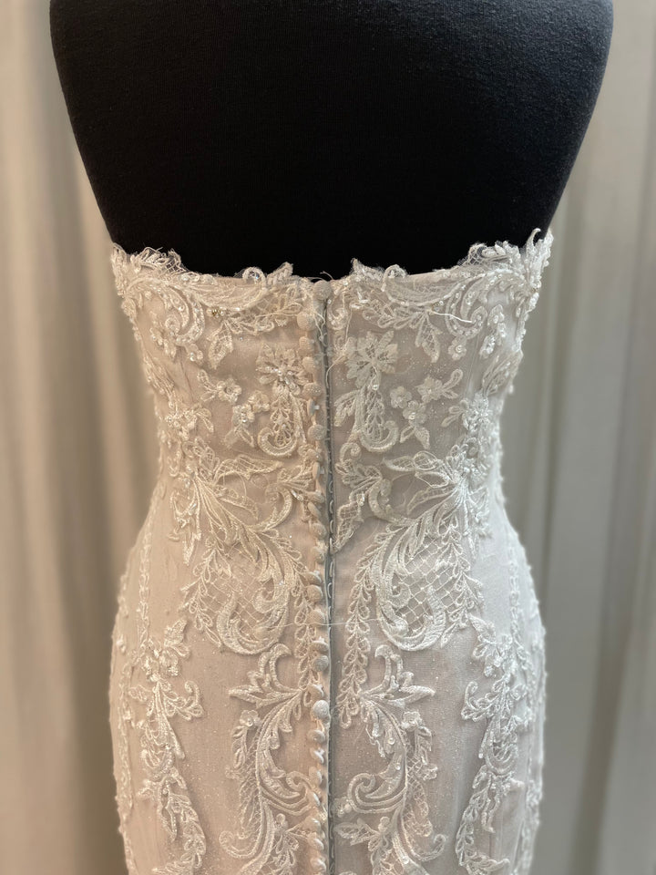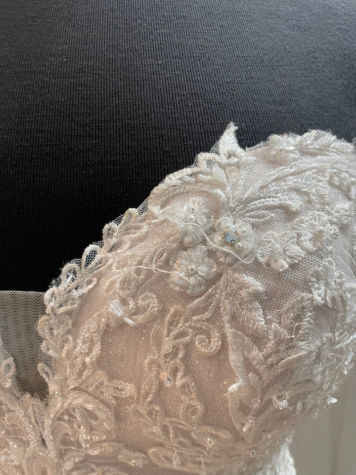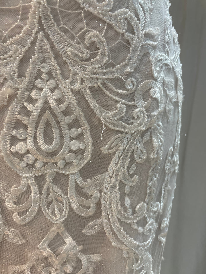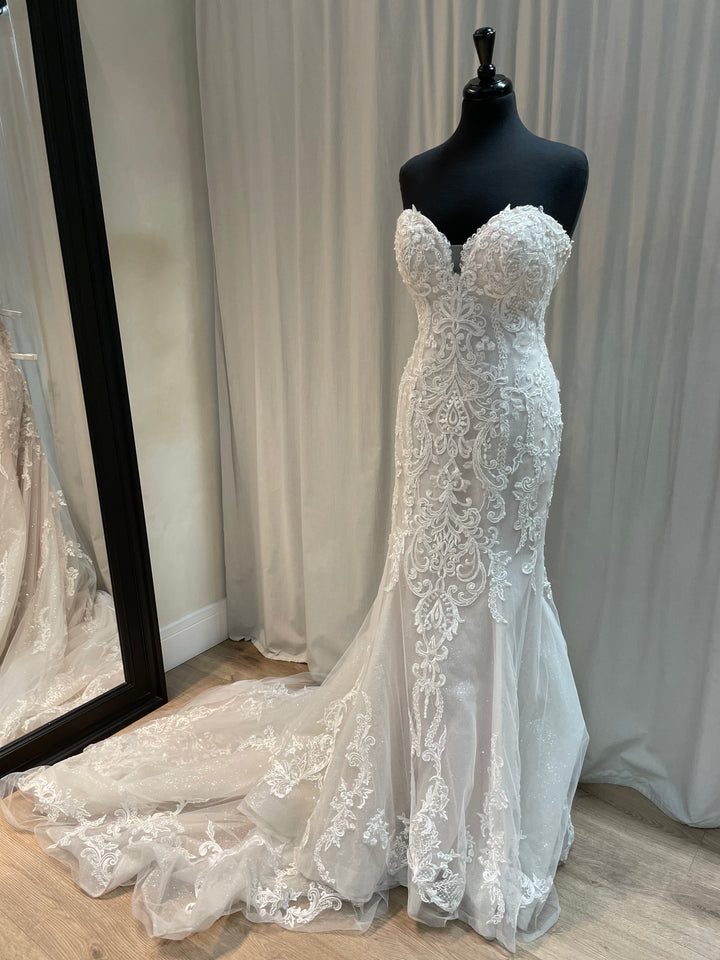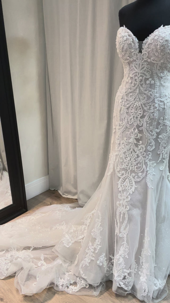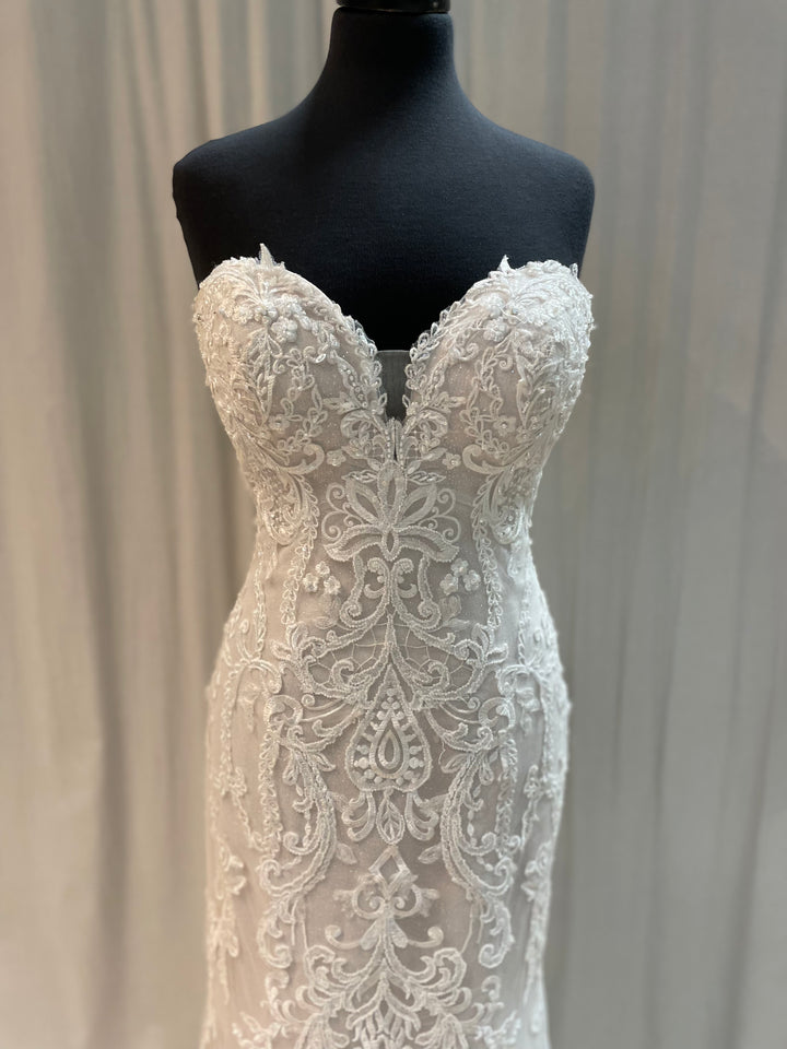 The Frederique gown by Maggie Sottero pairs classic bridal elegance with contemporary sophistication. Its beautifully sculpted silhouette highlights the figure, while soft lace detailing and subtle texture add depth and romance.