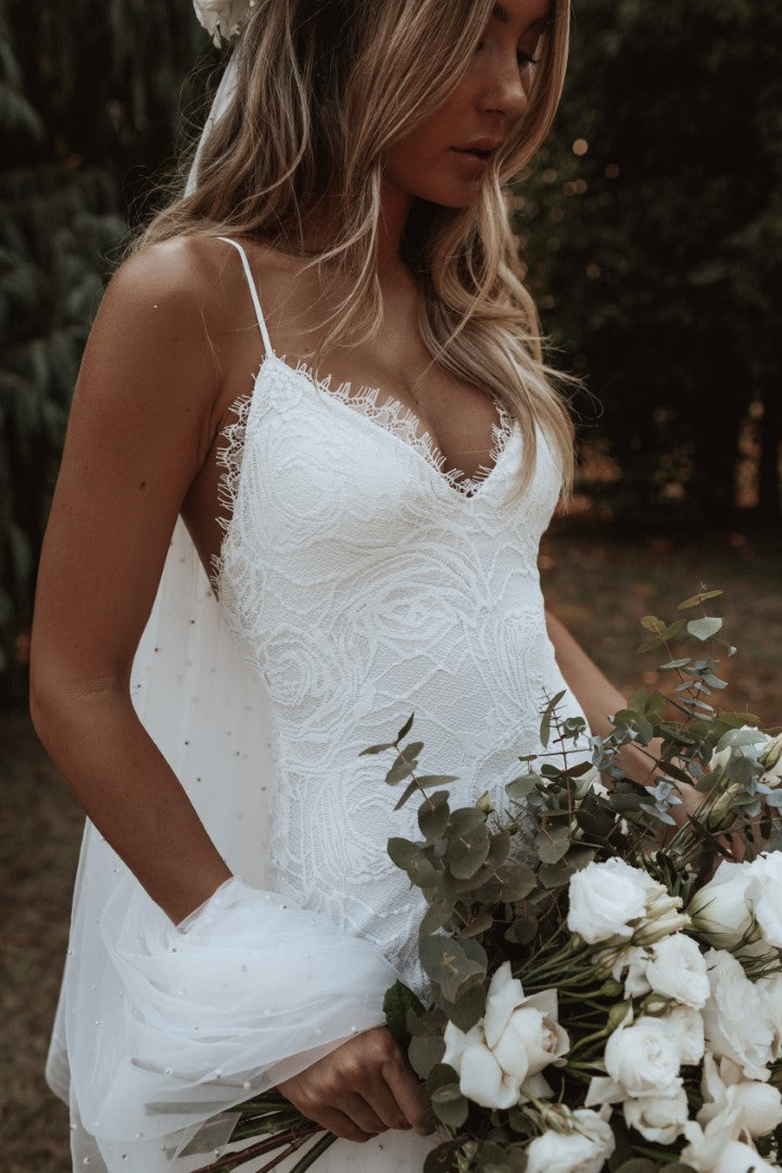 Romantic and effortlessly timeless, Clo by Grace Loves Lace is crafted from elegant rose stretch lace that flatters every curve. With a fit-and-flare silhouette and feminine detailing, Clo combines modern comfort with classic bridal beauty. A gown that feels as graceful as it looks, Clo is designed for brides who want effortless elegance that will never date.