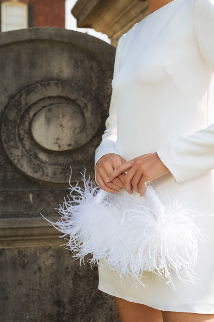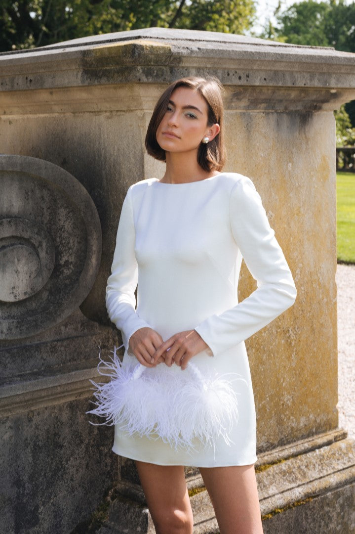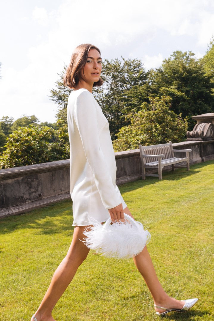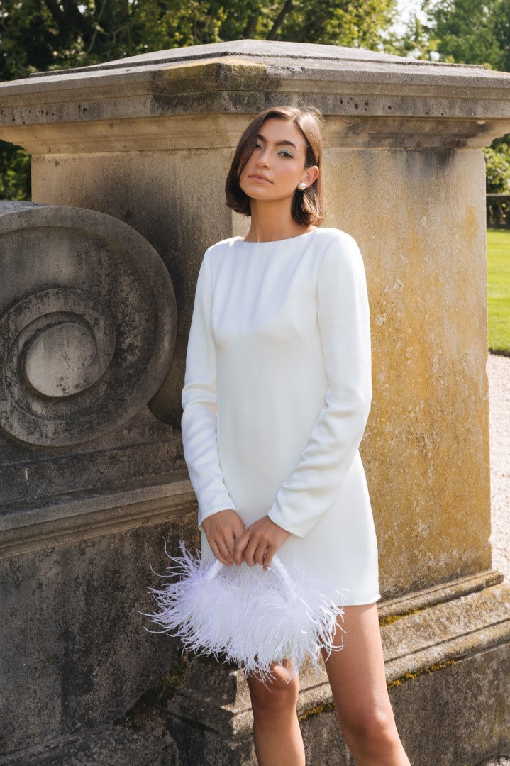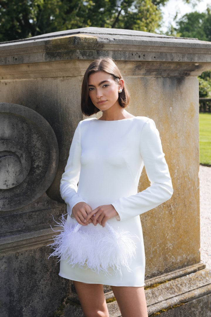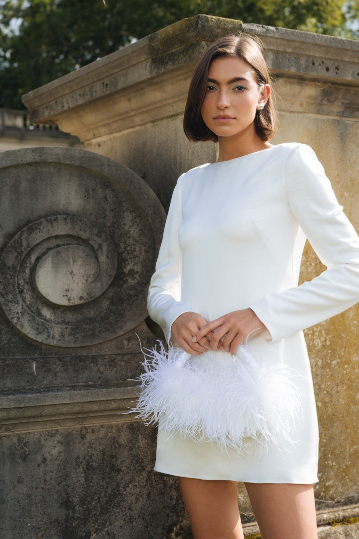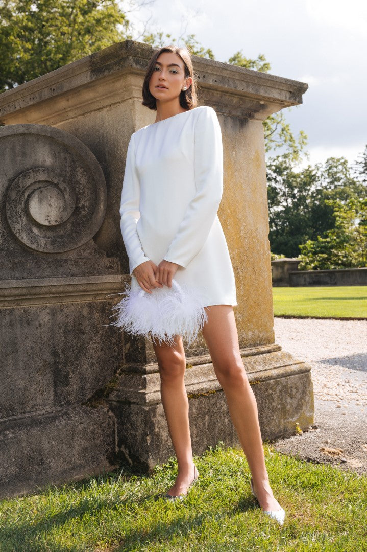 Minimal and refined, Landon by Jenny Yoo proves less is more. Modest yet alluring, this chic white dress makes a sleek bridal statement.