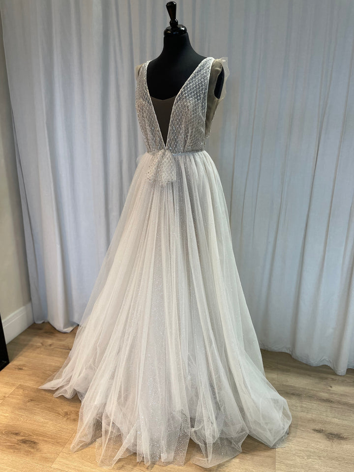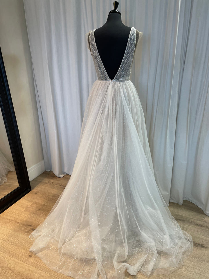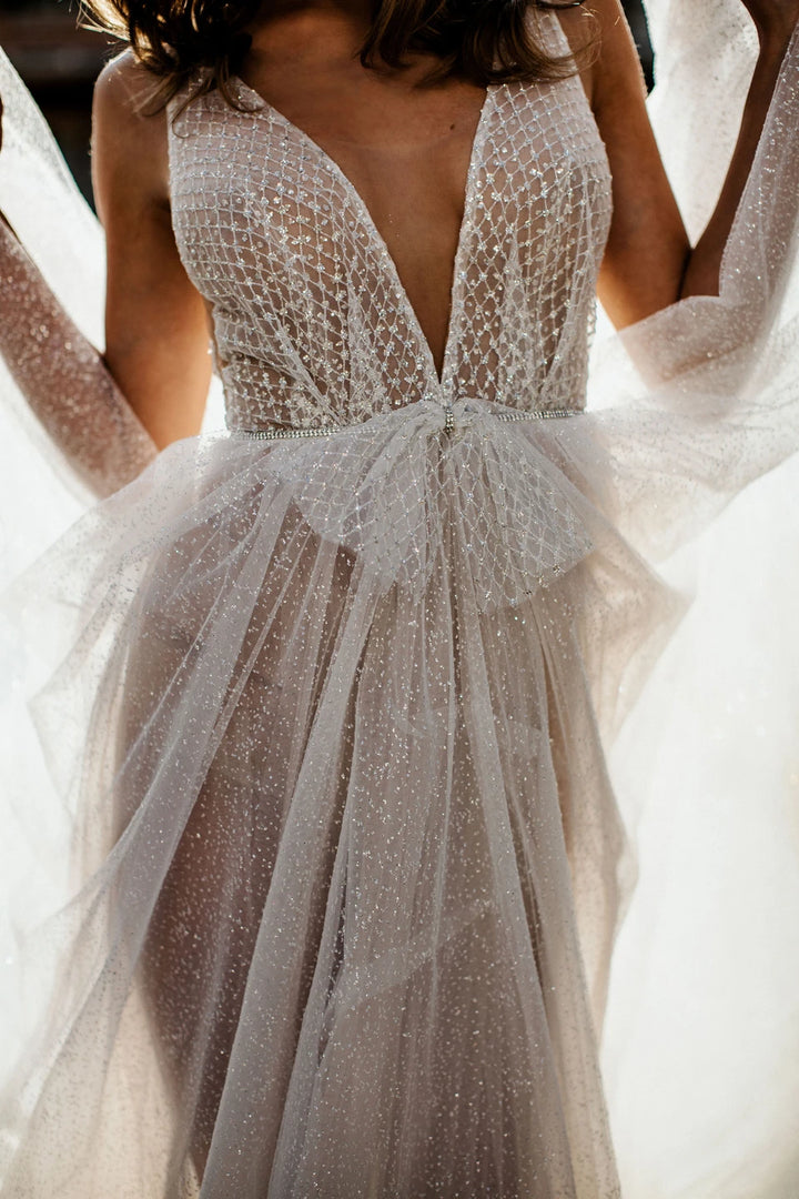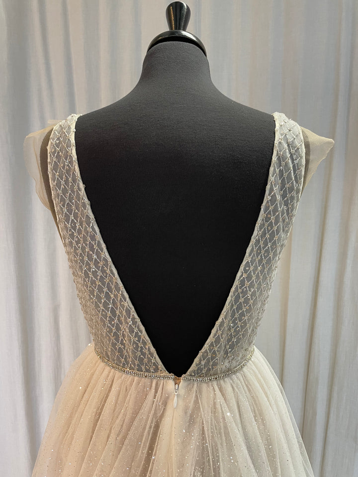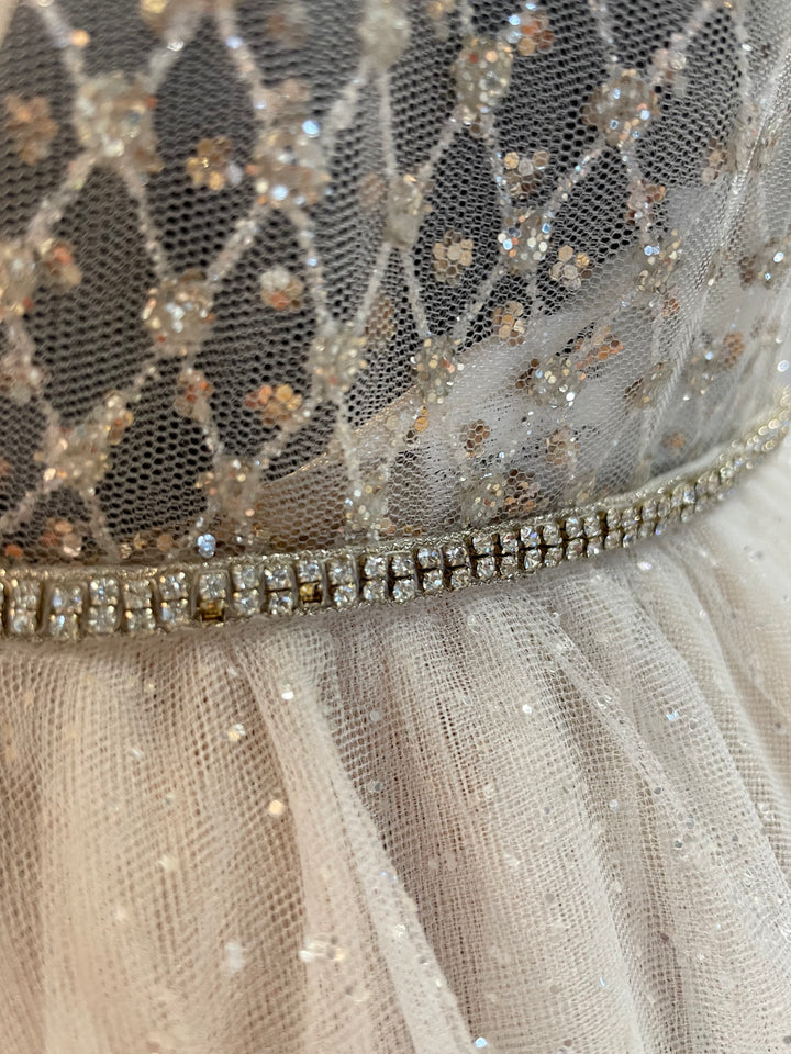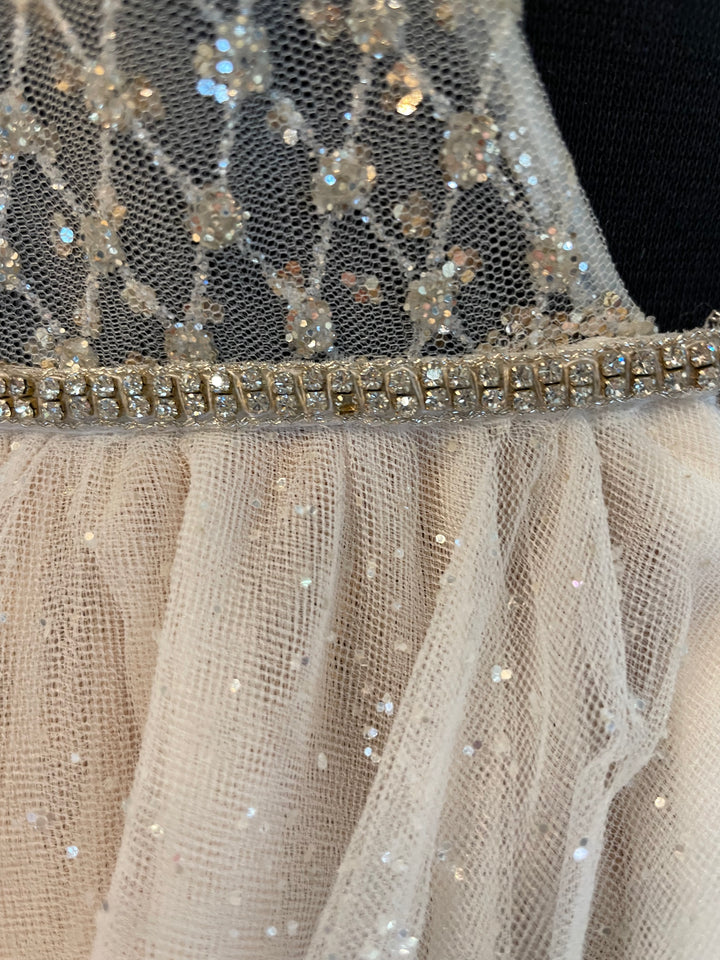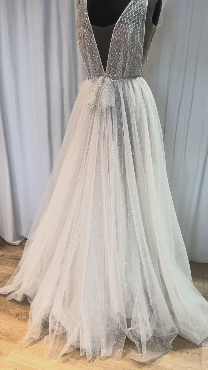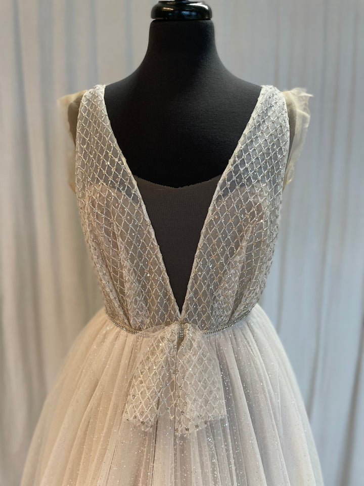 Turn heads wherever you go in this dazzling, sparkly showstopper. With its sultry low-cut neckline and figure-flattering silhouette, it’s designed to make you feel confident, sexy, and unforgettable. Perfect for a hen do, wedding, or wedding party, this dress brings the perfect mix of glamour and fun—because every celebration deserves a little sparkle.