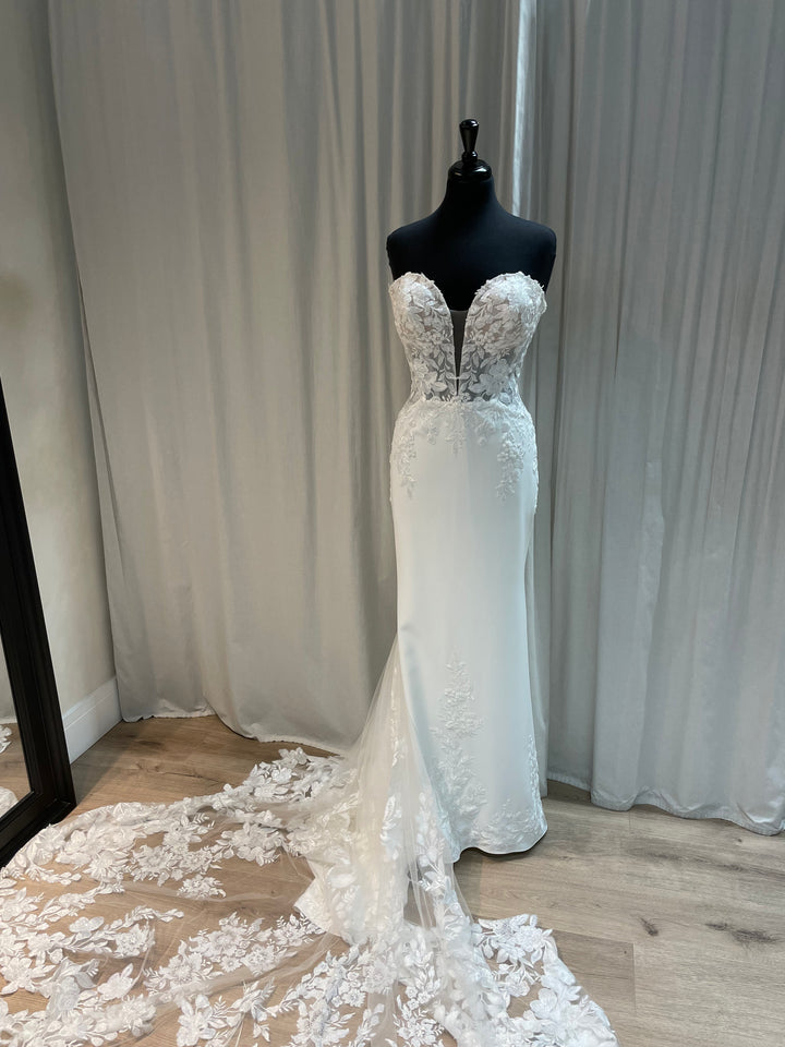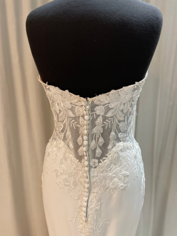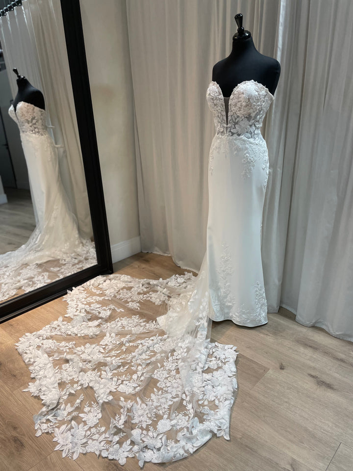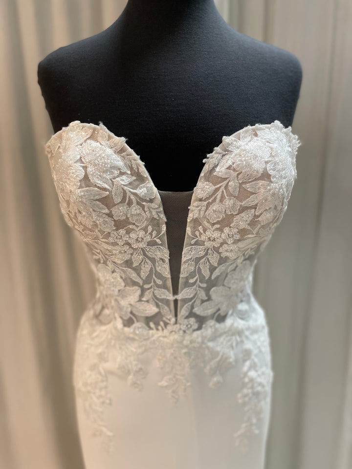 The Yara gown by Maggie Sottero blends sleek sophistication with soft, romantic detail. Designed for the modern bride, Yara features figure-flattering structure and delicate embellishments that create effortless sparkle without overwhelming the silhouette.