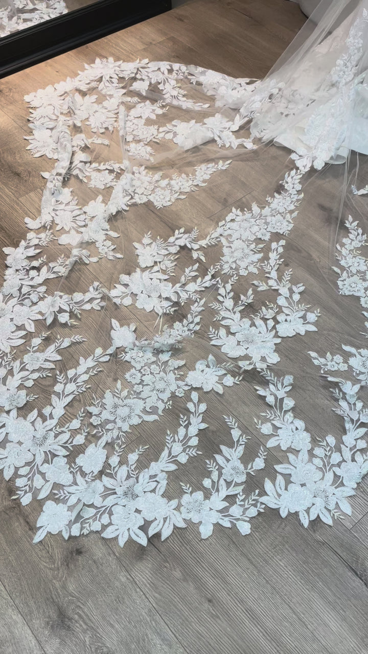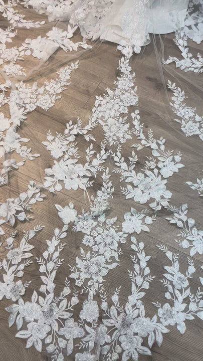 Lightweight, graceful, and beautifully refined, this gown is perfect for brides who want a contemporary look wrapped in timeless elegance.